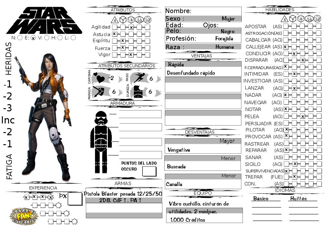 Casi todas las plantillas están sacadas de Savage Star Wars que salió en el blog "Crónicas del Clan Lobo Gris" .