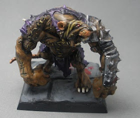 Hoy toca ya las dos últimas miniaturas, ambas compradas de segunda mano, un asesino Skaven, que me sirve como héroe y una rata ogro de plástico.